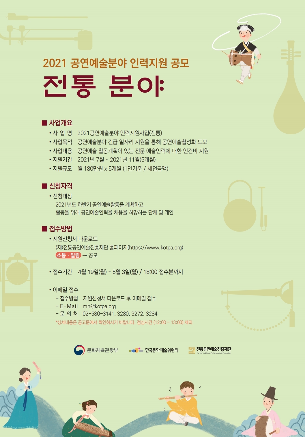 2021 공연예술분야 인력지원사업(전통공연예술) 공모안내 |
